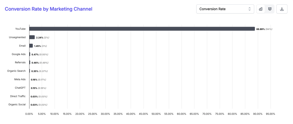 ChatGPT’s conversion rate is much lower that most of my other channels (.15%).